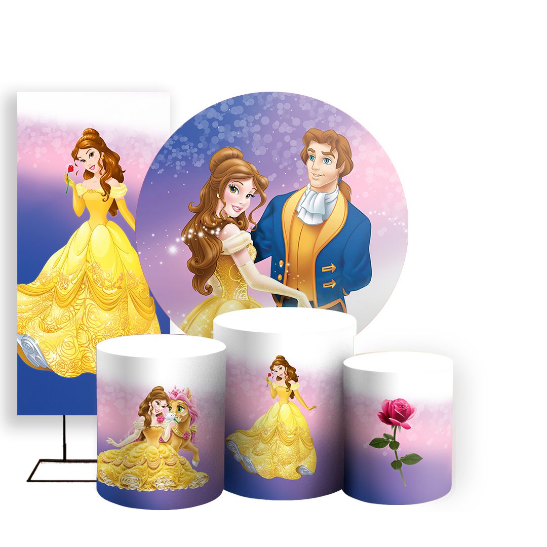 KIT Redondo Trio e Faixa - A Bela e a Fera - Sublimado 3D