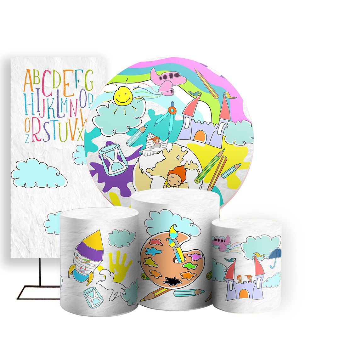 Com o kit Redondo, Trio de capas e Faixa lateral você criar uma decoração criativa para qualquer festa ou evento.