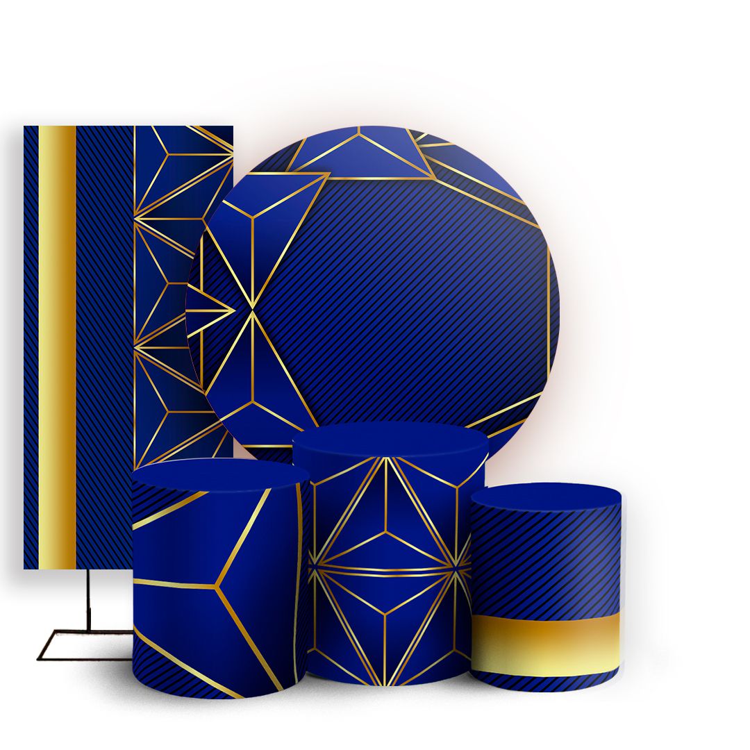 KIT Redondo Trio e Faixa - Abstrato Azul - Sublimado 3D