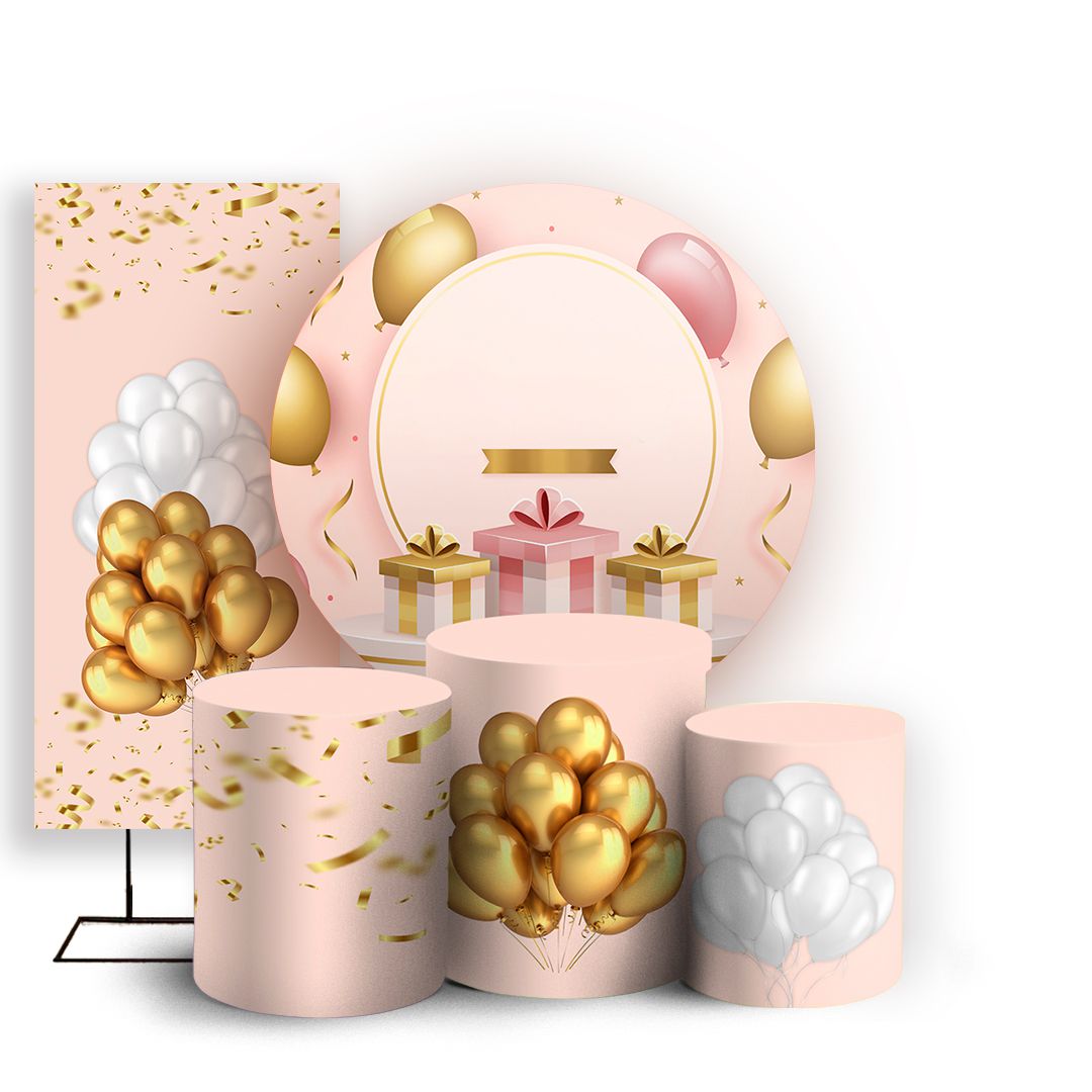 Com o kit Redondo, Trio de capas e Faixa lateral você criar uma decoração criativa para qualquer festa ou evento.