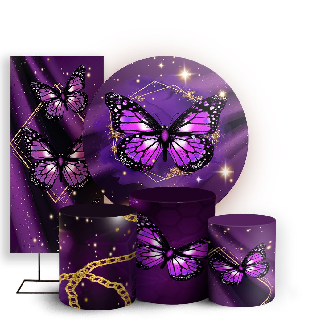 KIT Redondo Trio e Faixa - Borboleta Roxa - Sublimado 3D