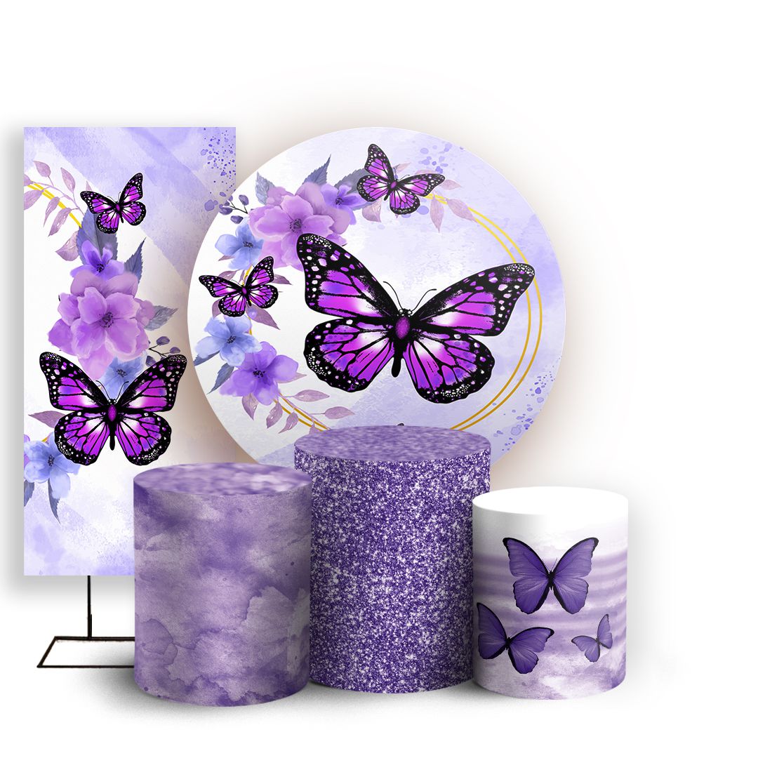 KIT Redondo Trio e Faixa - Borboletas - Sublimado 3D