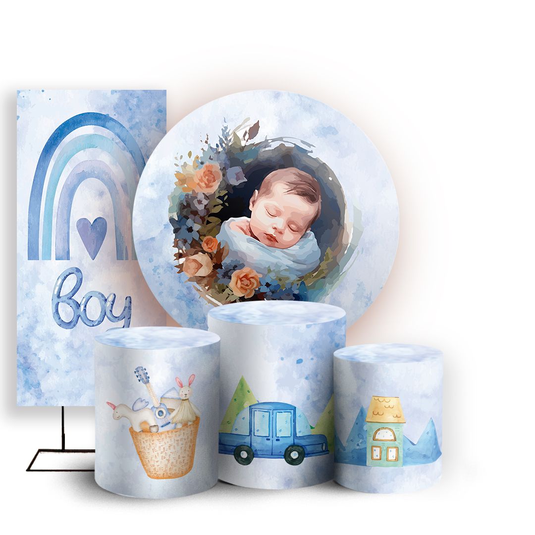 KIT Redondo Trio e Faixa - Cha de Bebe - Sublimado 3D
