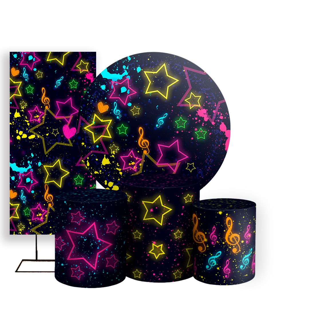 KIT Redondo Trio e Faixa - Estrelas Neon Grunge - Sublimado 3D
