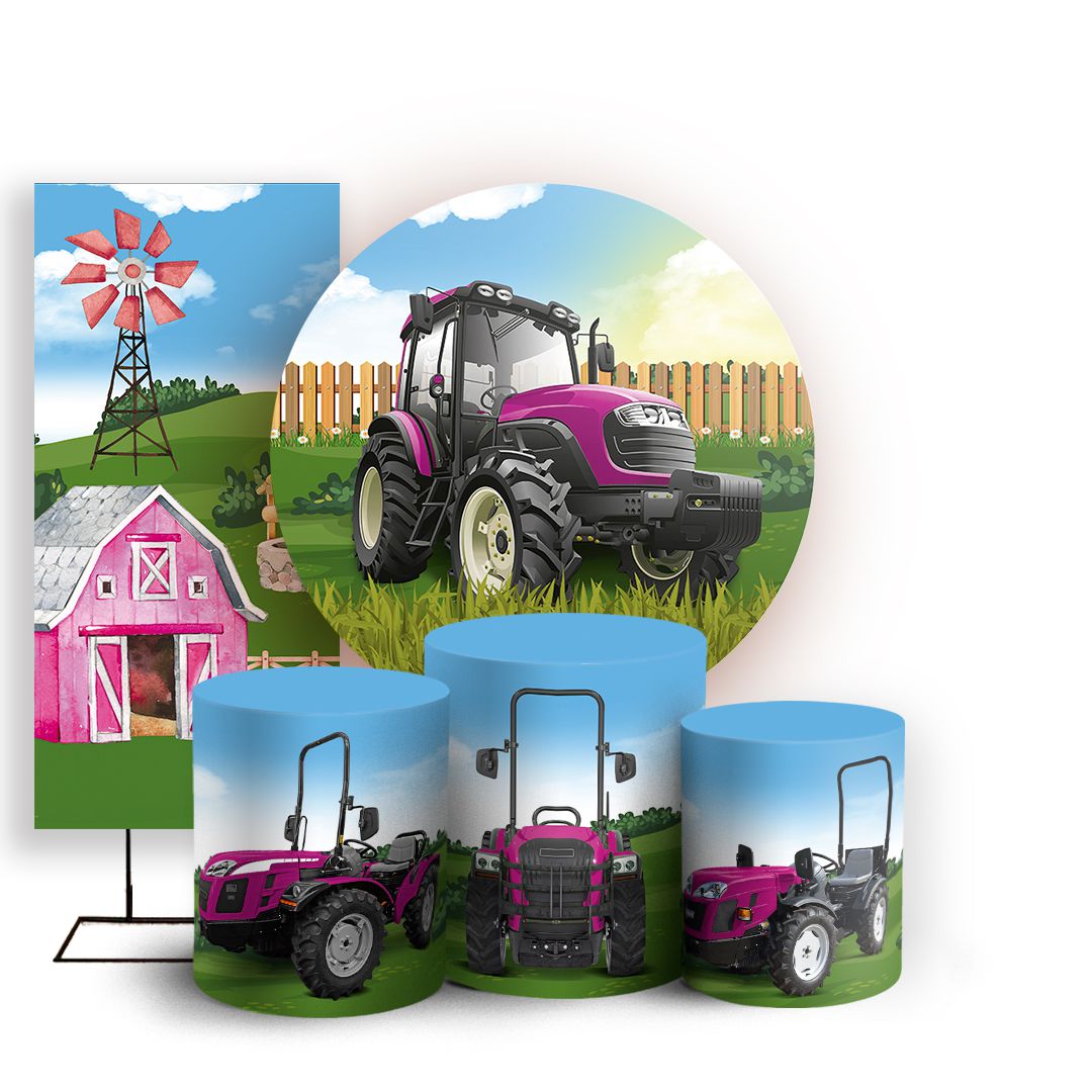 KIT Redondo Trio e Faixa - Fazendinha Trator - Sublimado 3D