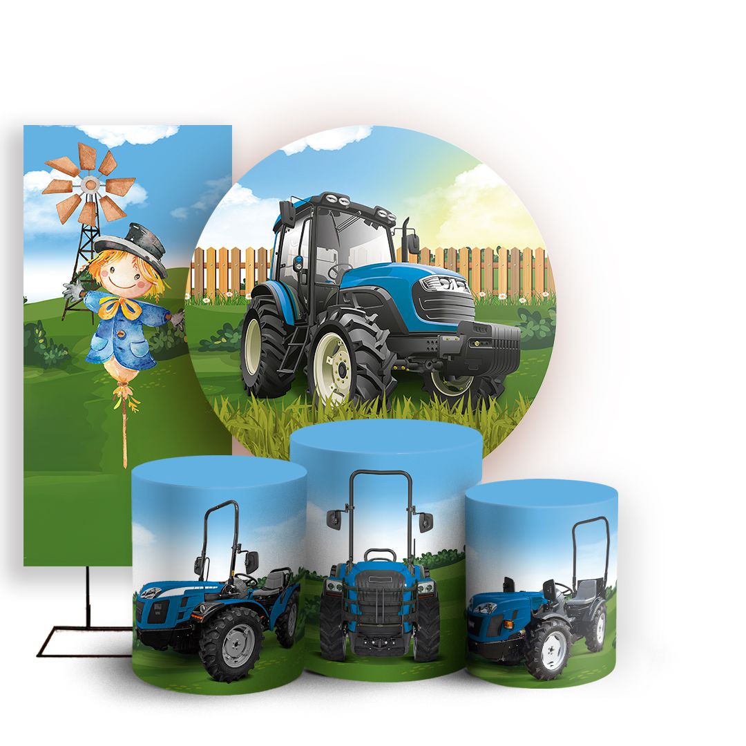KIT Redondo Trio e Faixa - Fazendinha Trator - Sublimado 3D