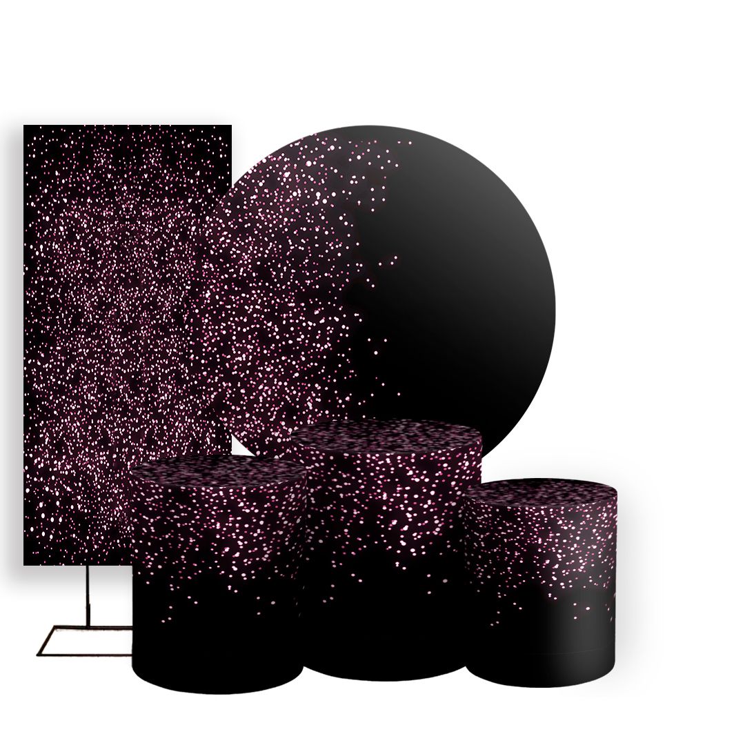KIT Redondo Trio e Faixa - Glitter Preto Rosa - Sublimado 3D