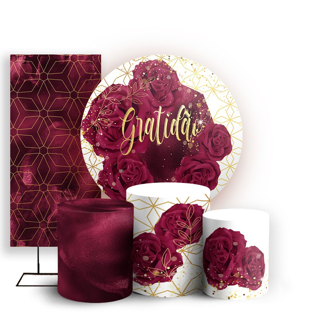 KIT Redondo Trio e Faixa - Gratidão Marsala - Sublimado 3D
