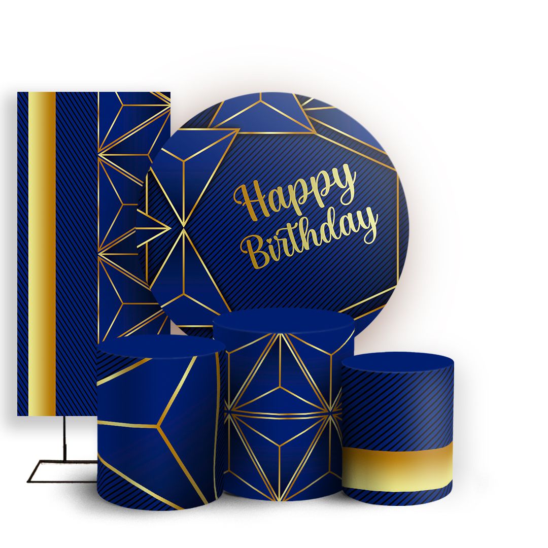 KIT Redondo Trio e Faixa - Happy Birthday Azul - Sublimado 3D