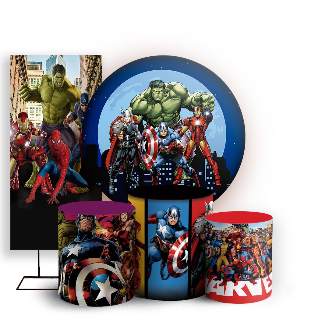 Com o kit Redondo, Trio de capas e Faixa lateral você criar uma decoração criativa para qualquer festa ou evento.
