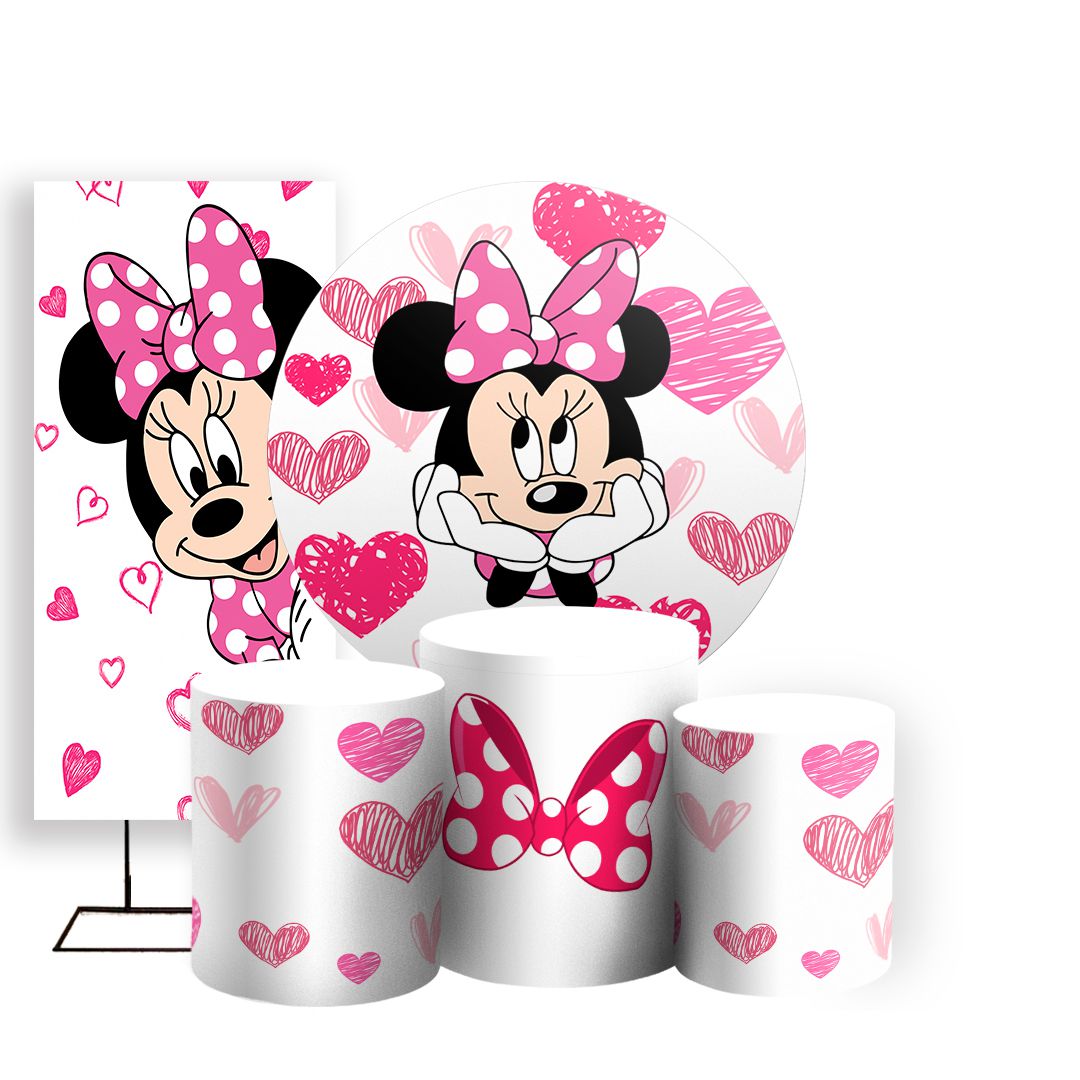 KIT Redondo Trio e Faixa - Minnie Rosa - Sublimado 3D