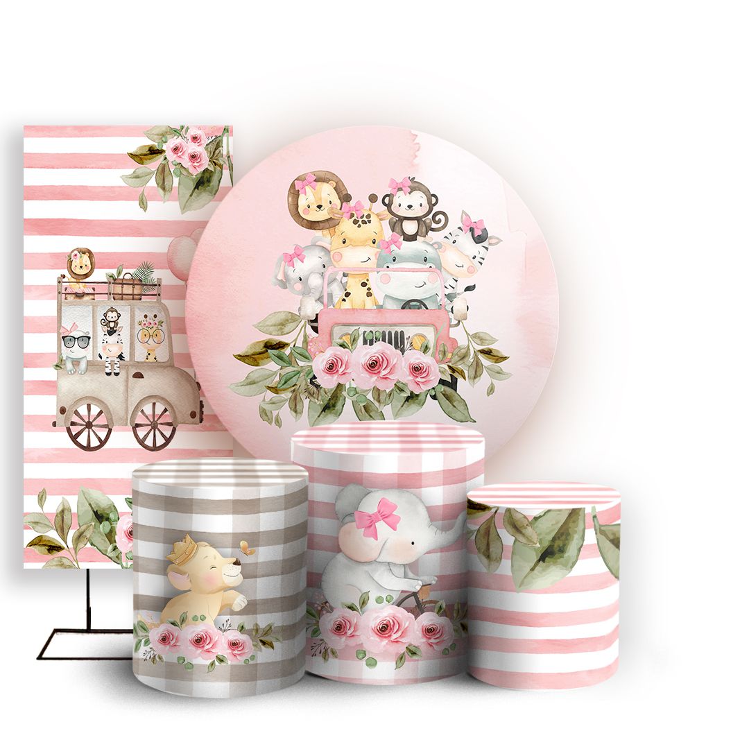 KIT Redondo Trio e Faixa - Safari Rosa - Sublimado 3D