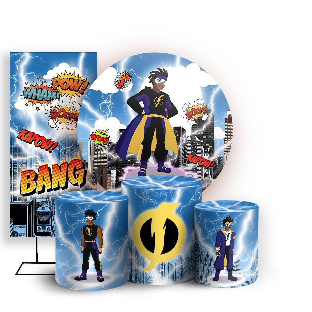 Com o kit Redondo, Trio de capas e Faixa lateral você criar uma decoração criativa para qualquer festa ou evento.