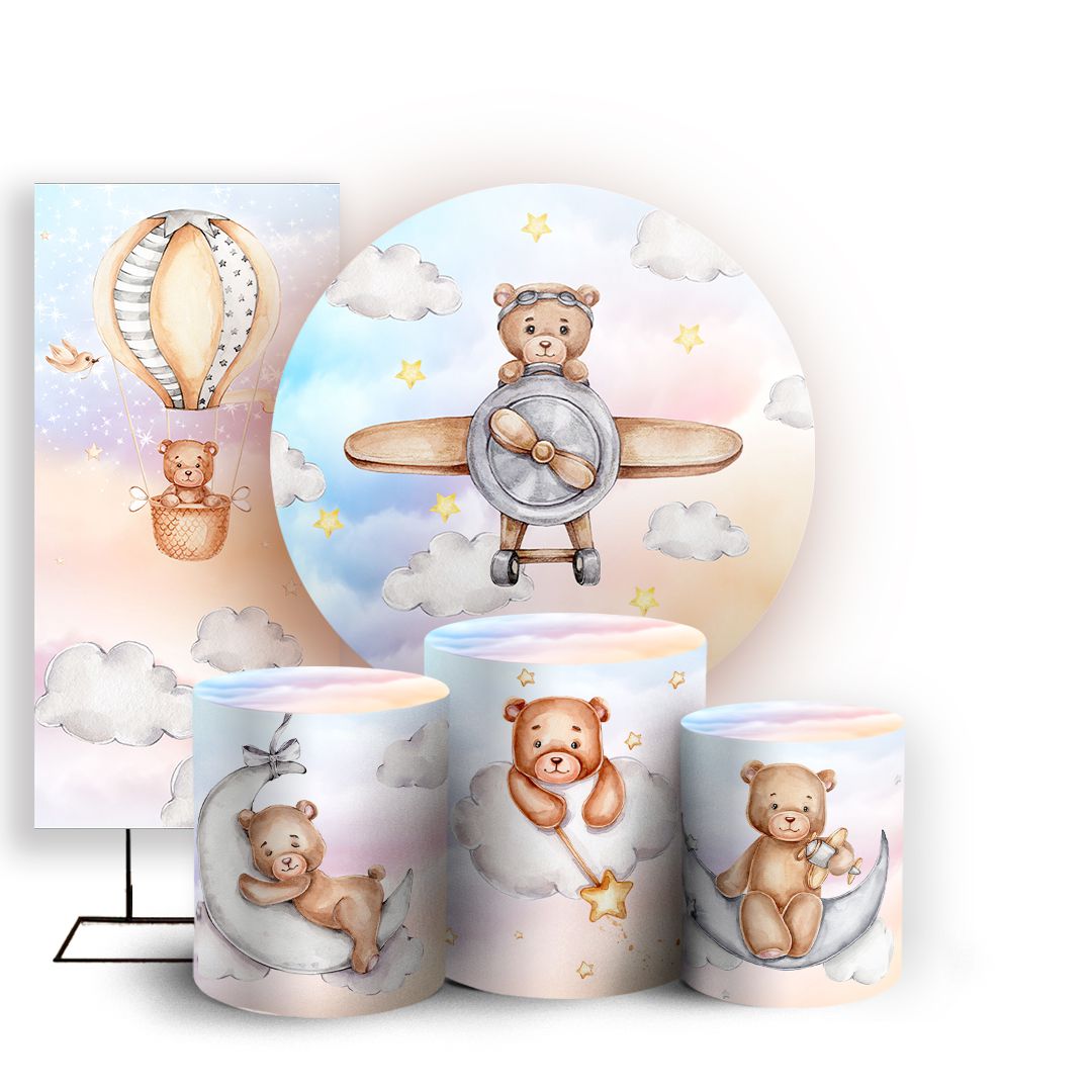 KIT Redondo Trio e Faixa - Ursinho Aviador - Sublimado 3D