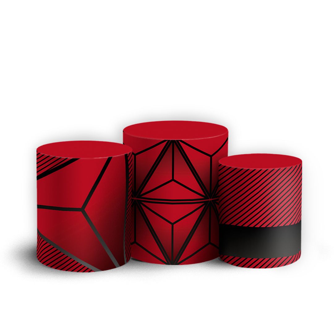 Trio Cilindro - Abstrato Vermelho - Sublimado 3D + Elástico