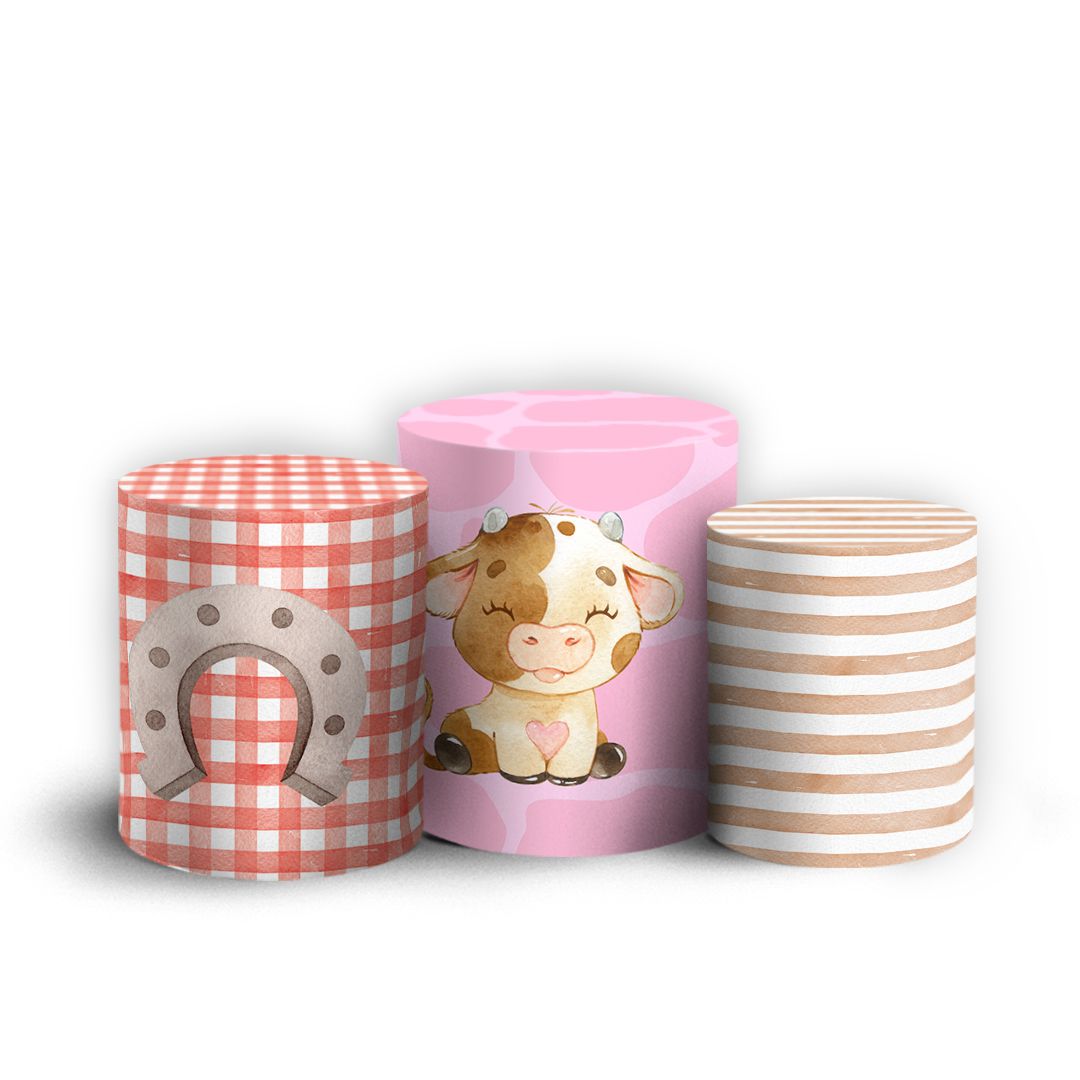 Trio Cilindro - Fazendinha Aquarela - Sublimado 3D + Elástico