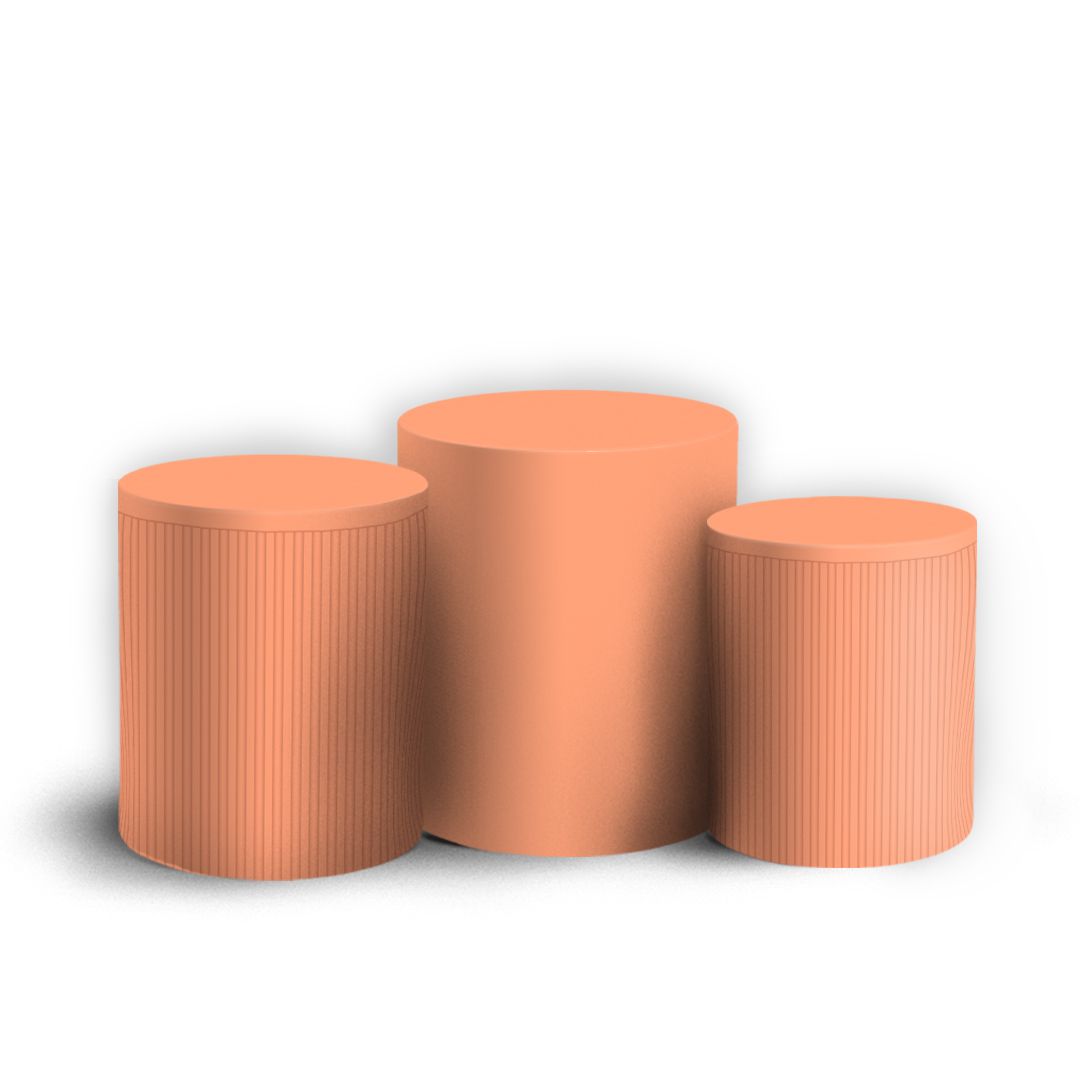 • Cilindro Pequeno (P): 45cm de altura x 38cm de diâmetro (119cm de circunferência)