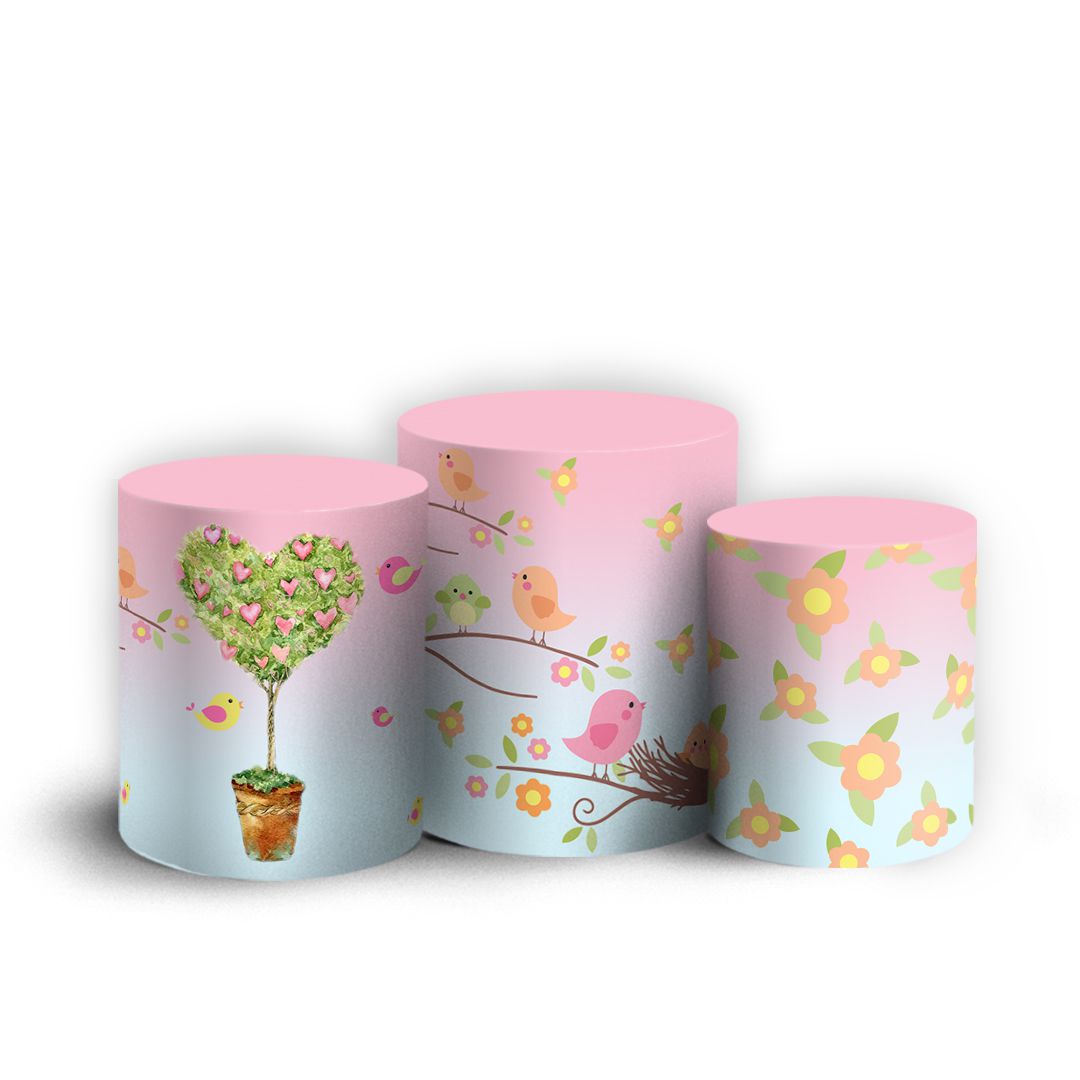 Trio Cilindro - Pássaros Cute - Sublimado 3D + Elástico