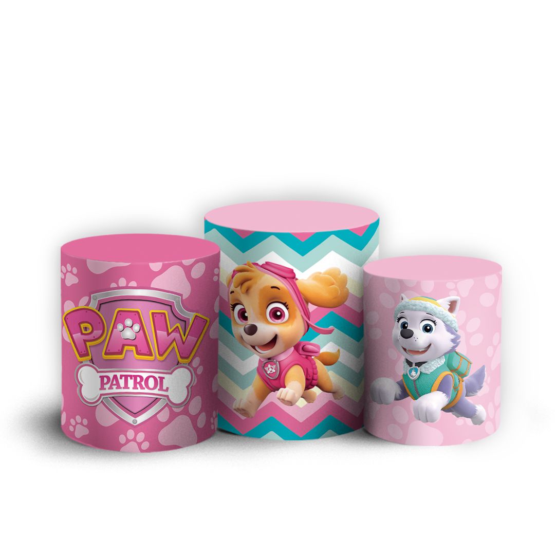 Trio Cilindro - Patrulha Canina Rosa - Sublimado 3D + Elástico