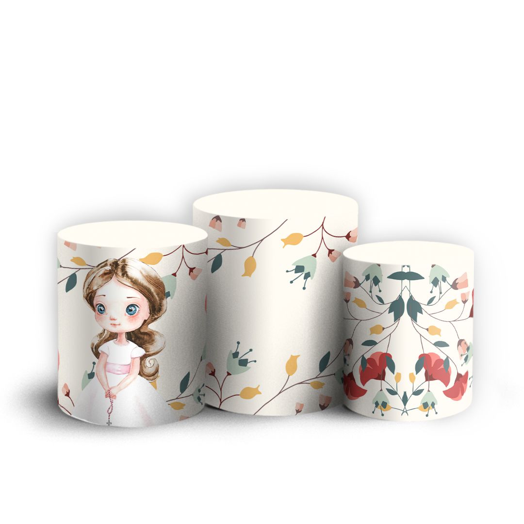 Trio Cilindro - Primeira Comunhão - Sublimado 3D + Elástico