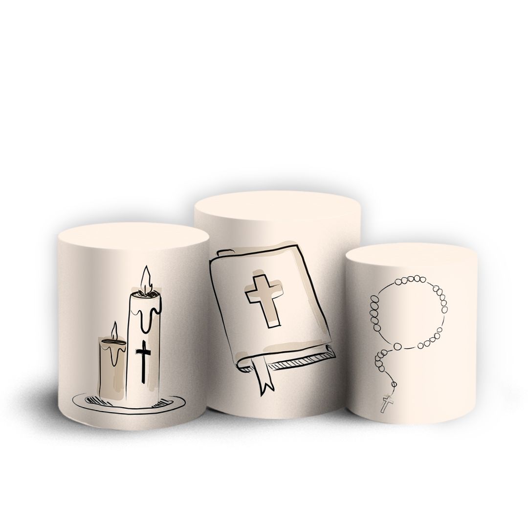 Trio Cilindro - Primeira Comunhão - Sublimado 3D + Elástico