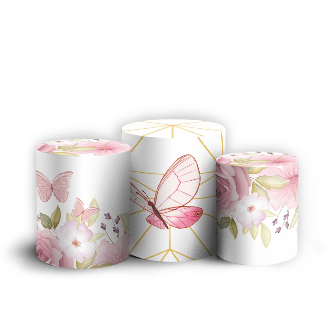 Trio Cilindro - Borboleta Rosa - Sublimado 3D + Elástico