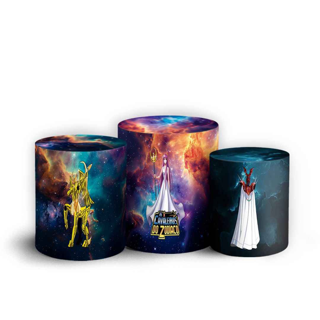 Trio Cilindro - Cavaleiros do Zodiaco - Sublimado 3D + Elástico
