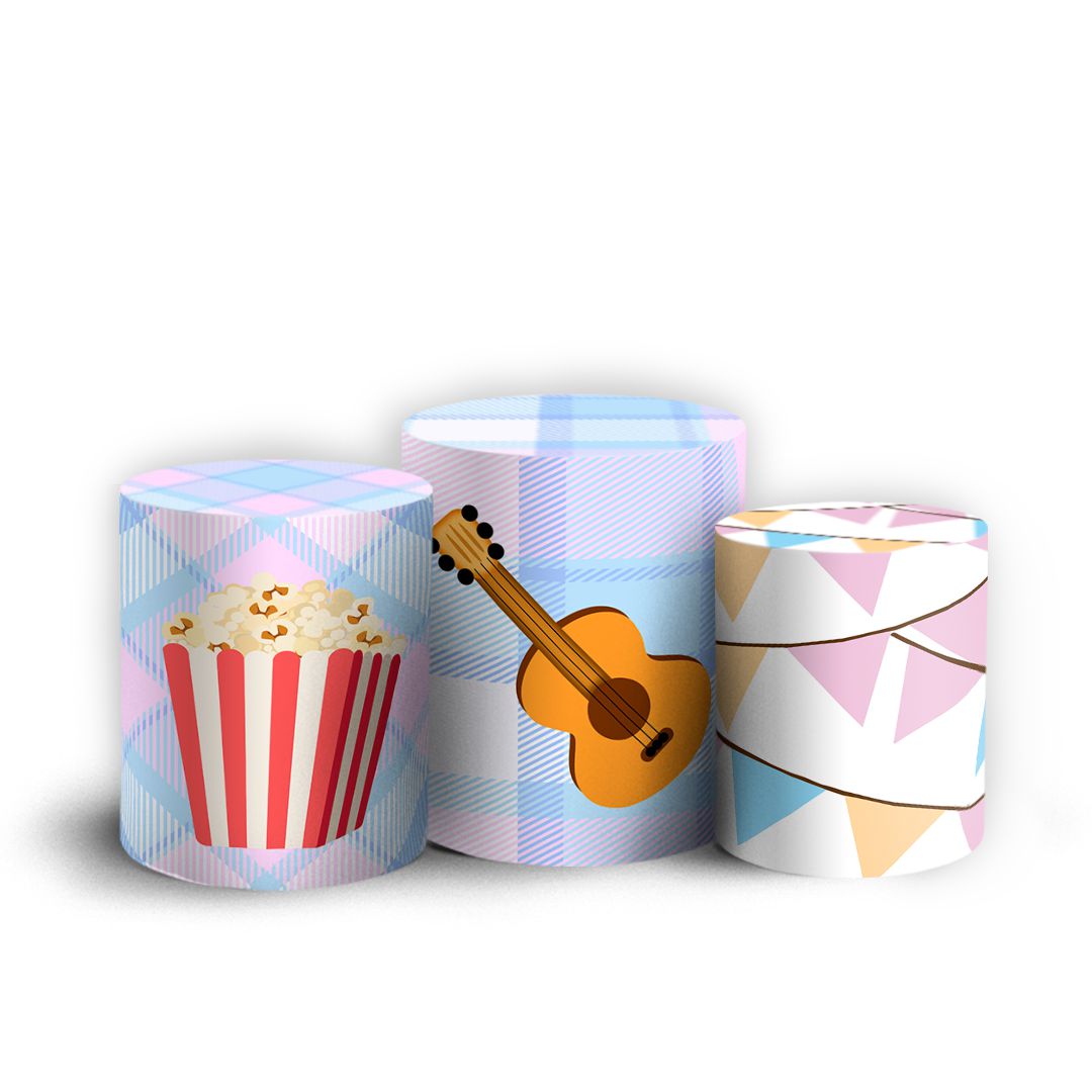 Trio Cilindro - Cha Revelacao Festa Junina - Sublimado 3D + Elástico