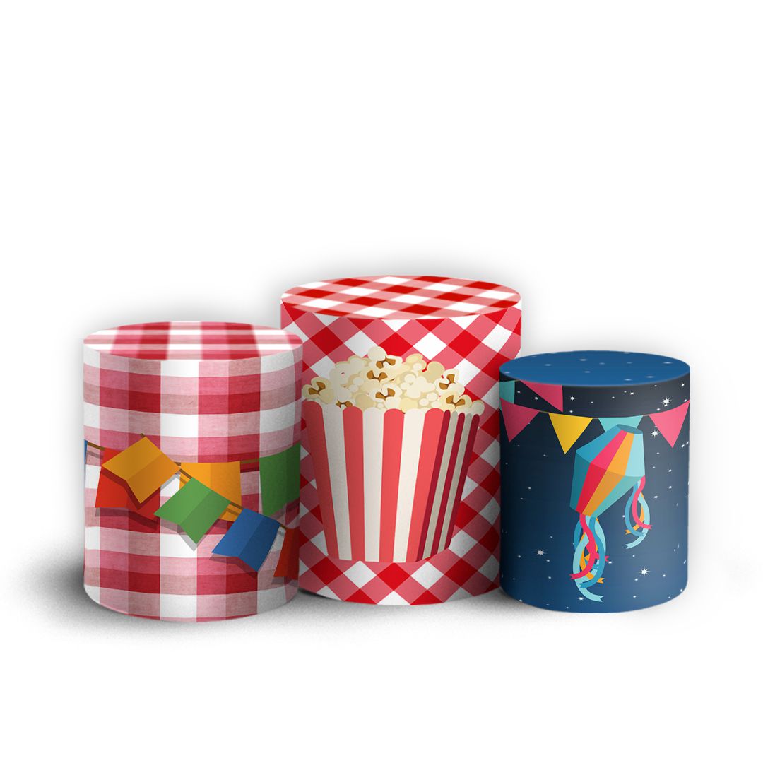 Trio Cilindro - Festa Junina - Sublimado 3D + Elástico