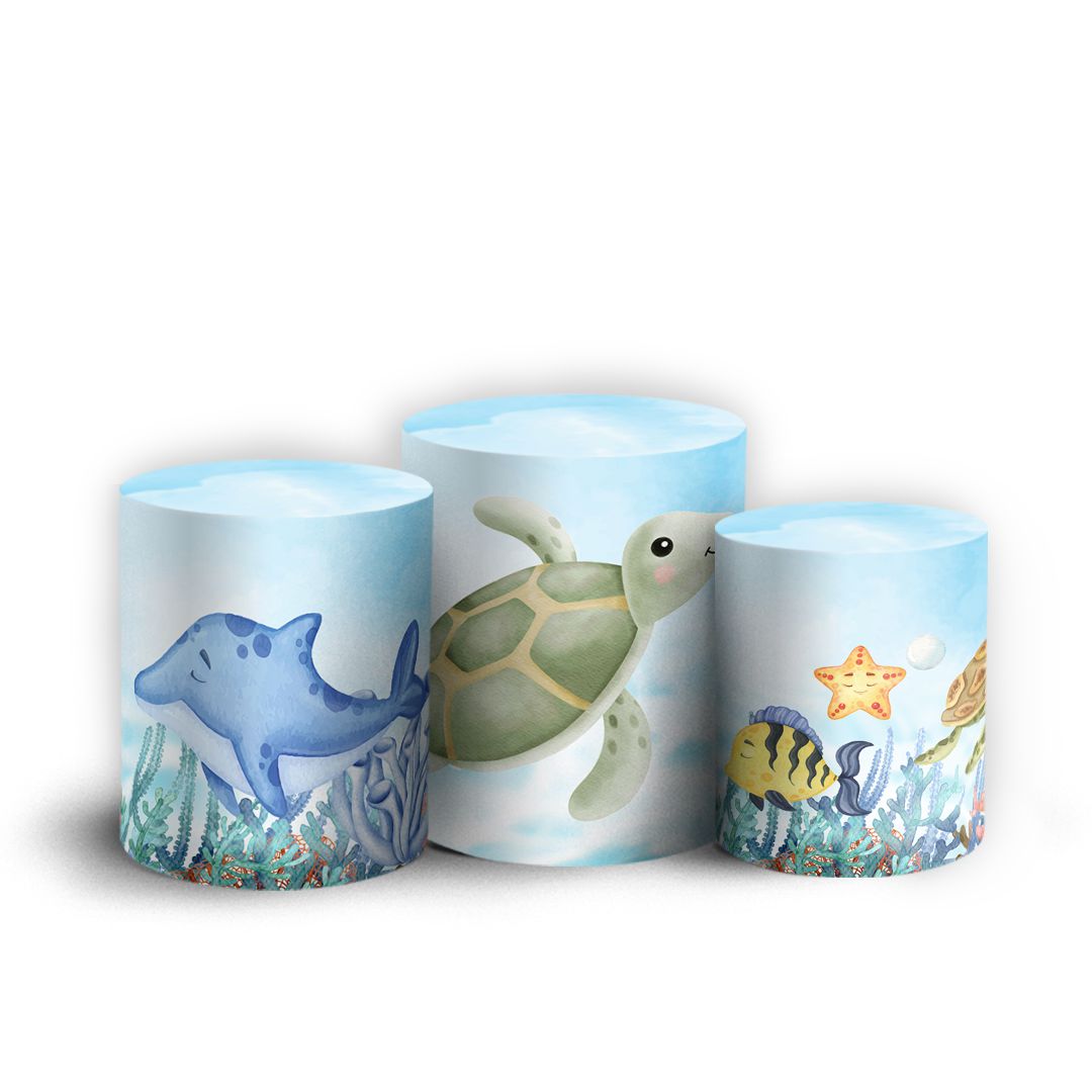 Trio Cilindro - Fundo Do Mar - Sublimado 3D + Elástico