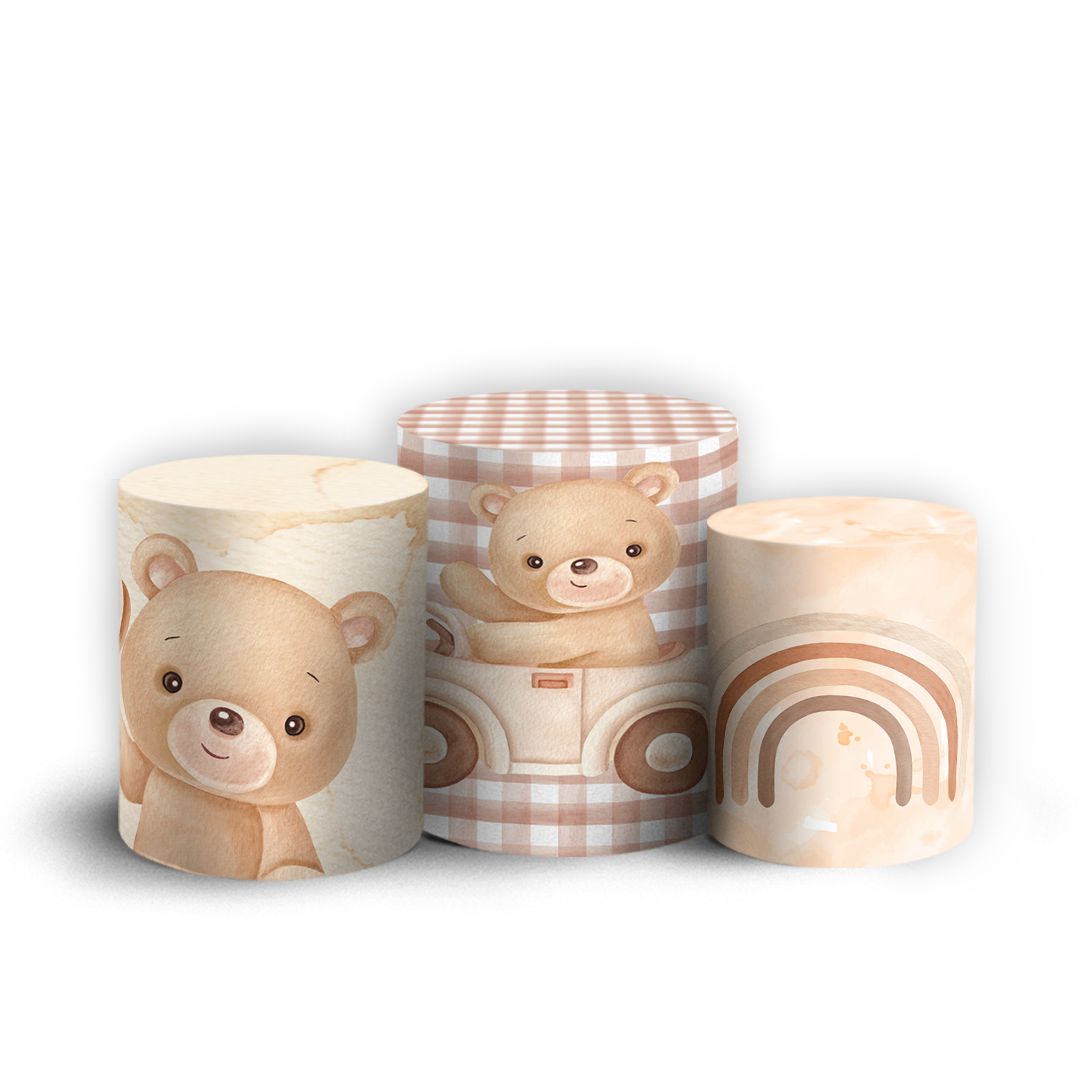 Trio Cilindro - Ursinho Marrom - Sublimado 3D + Elástico
