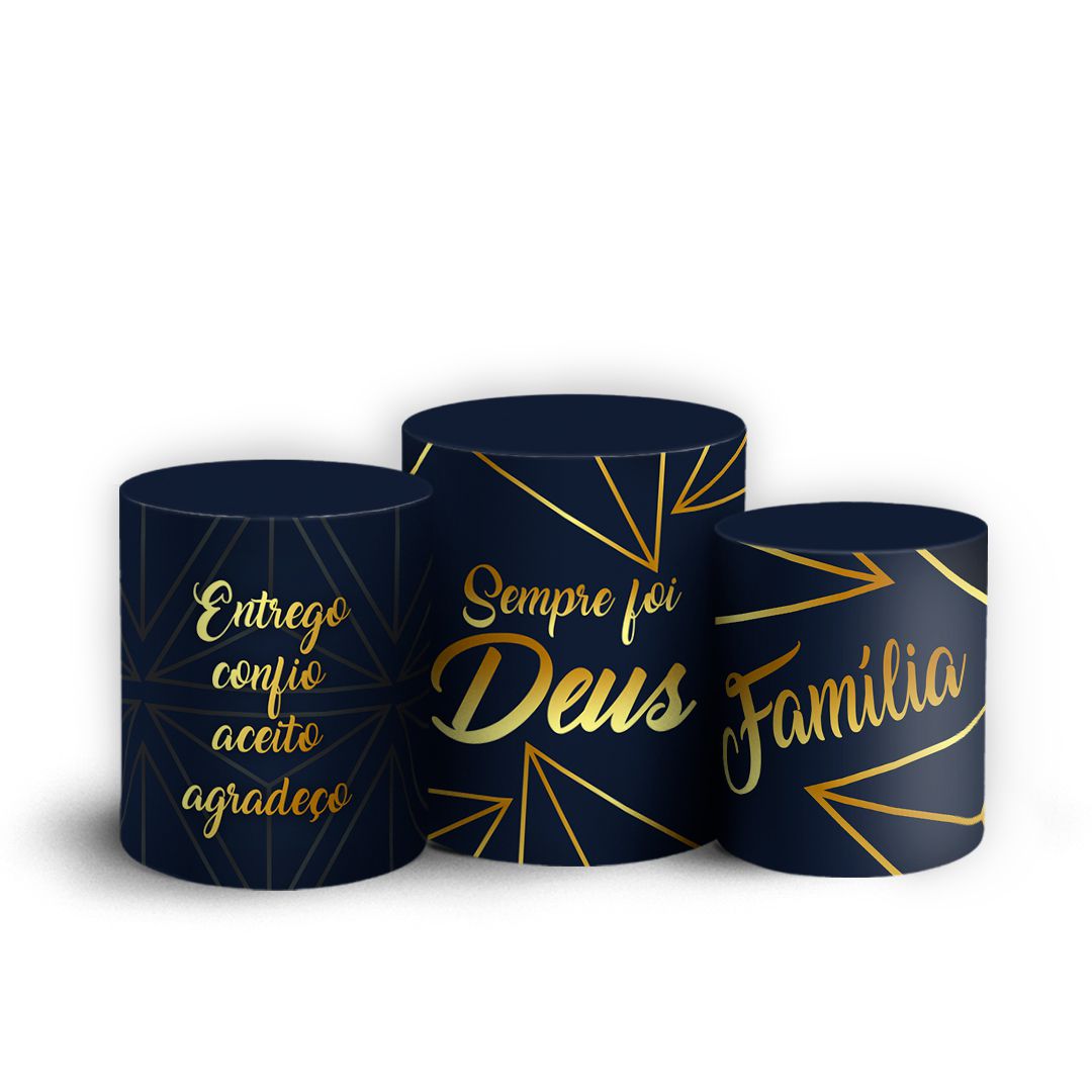 Trio Cilindro - Abstrato Azul - Sublimado 3D + Elástico