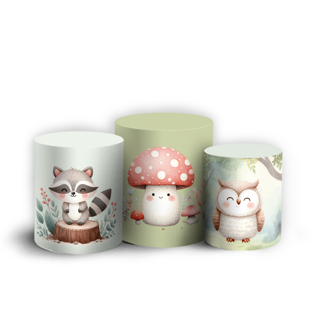 Trio Cilindro - Animais Bosque Encantado - Sublimado 3D