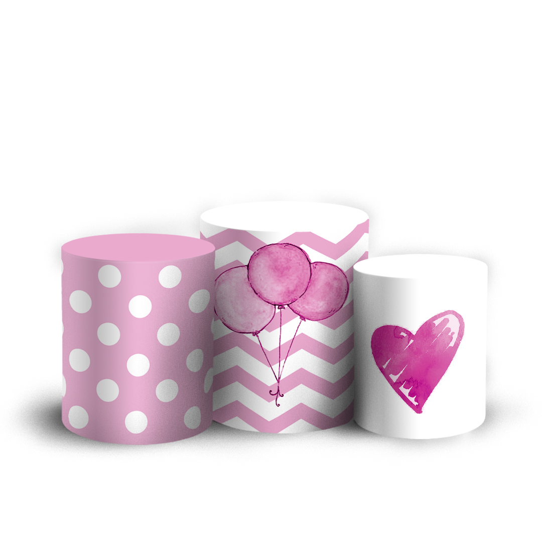 Trio Cilindro - Balao Rosa - Sublimado 3D + Elástico