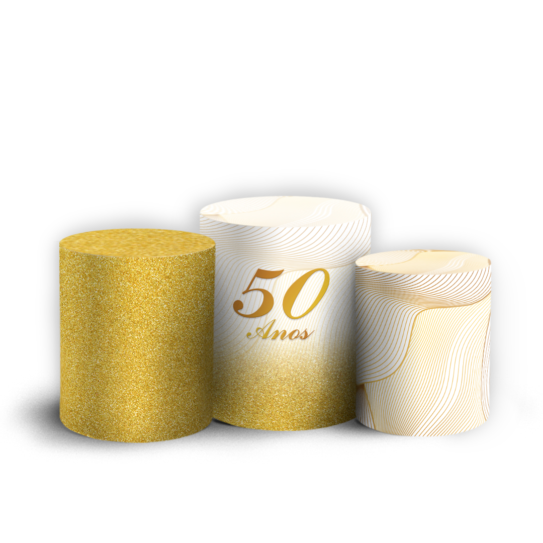 Trio Cilindro - Bodas de Ouro - Sublimado 3D + Elástico