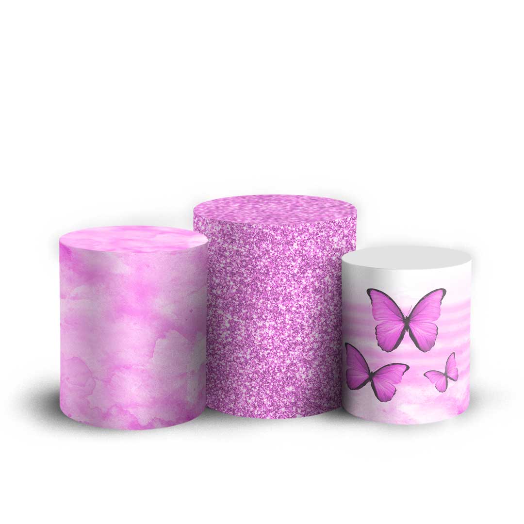 Trio Cilindro - Borboletas Rosa - Sublimado 3D + Elástico