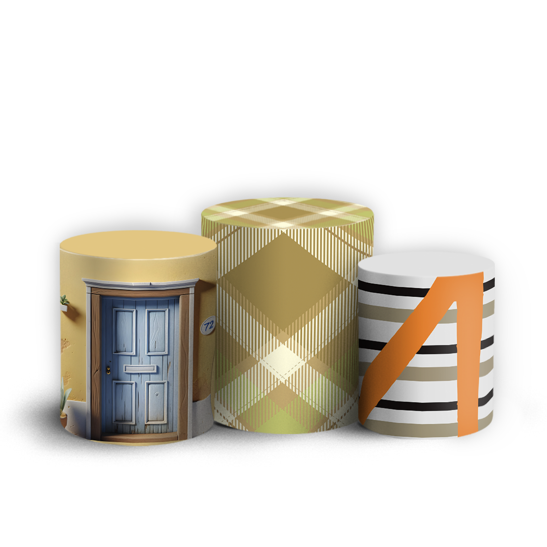• Cilindro Pequeno (P): 45cm de altura x 38cm de diâmetro (119cm de circunferência)