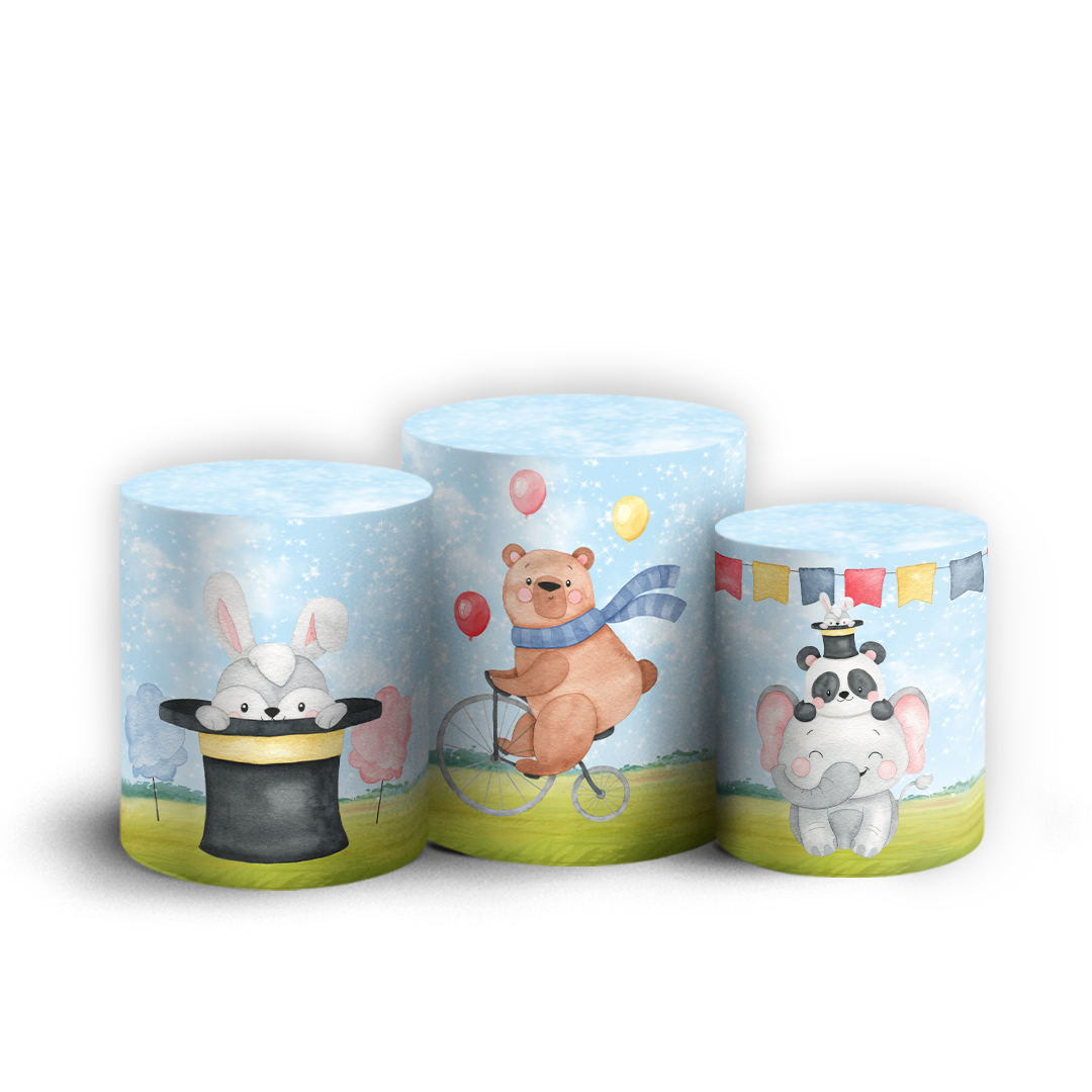 Trio Cilindro - Circo Animais - Sublimado 3D + Elástico