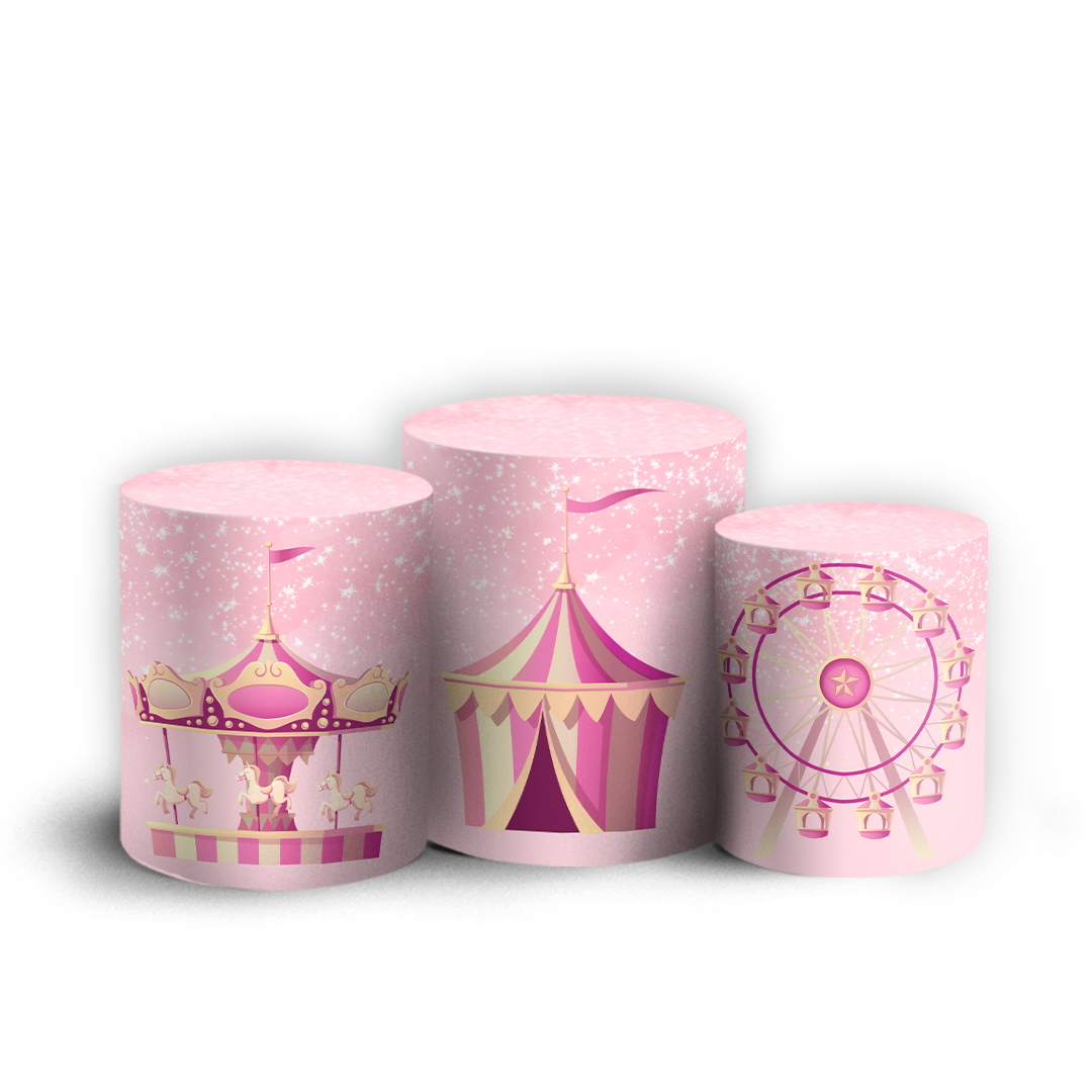Trio Cilindro - Circo Rosa - Sublimado 3D + Elástico