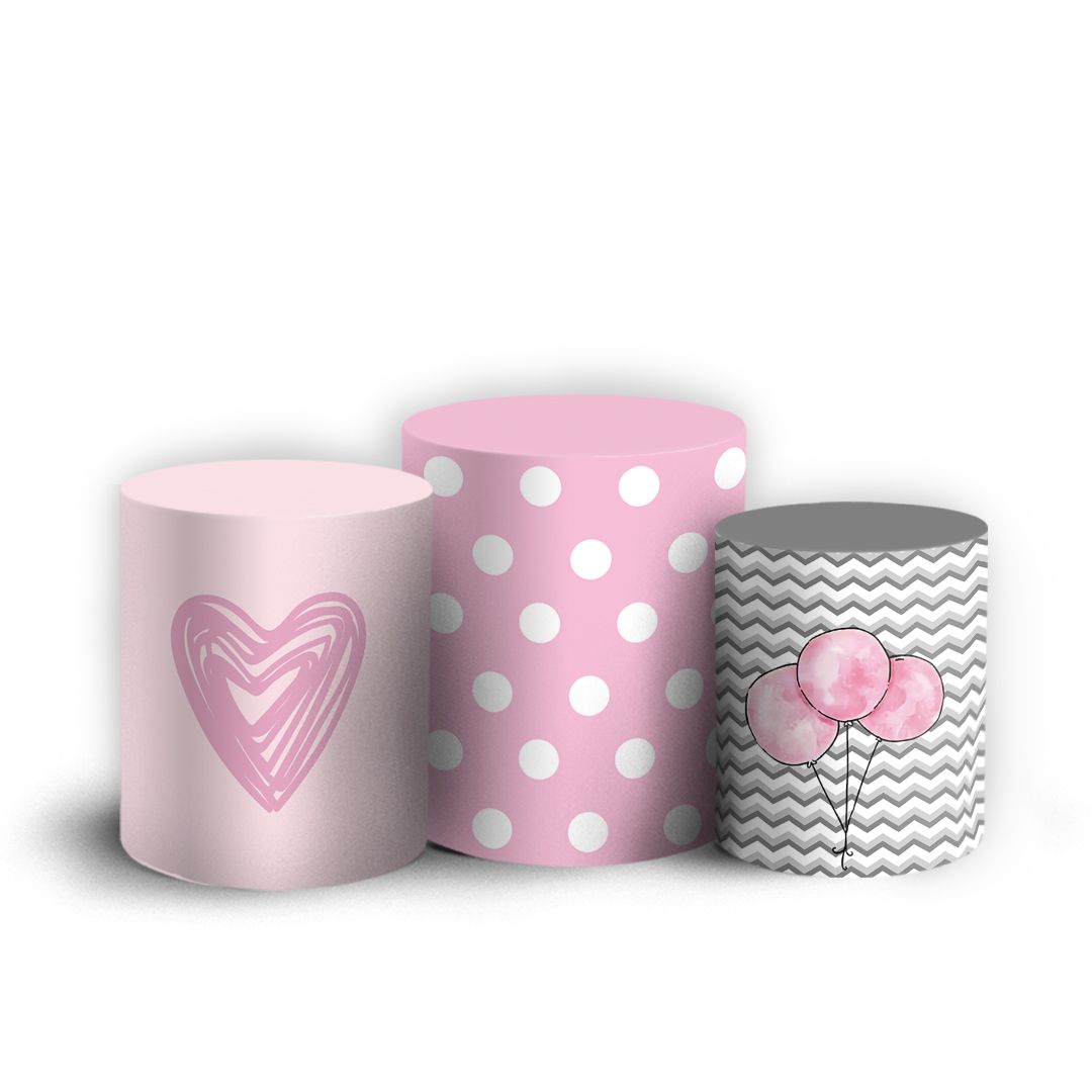 Trio Cilindro - Elefante Cute Rosa - Sublimado 3D + Elástico