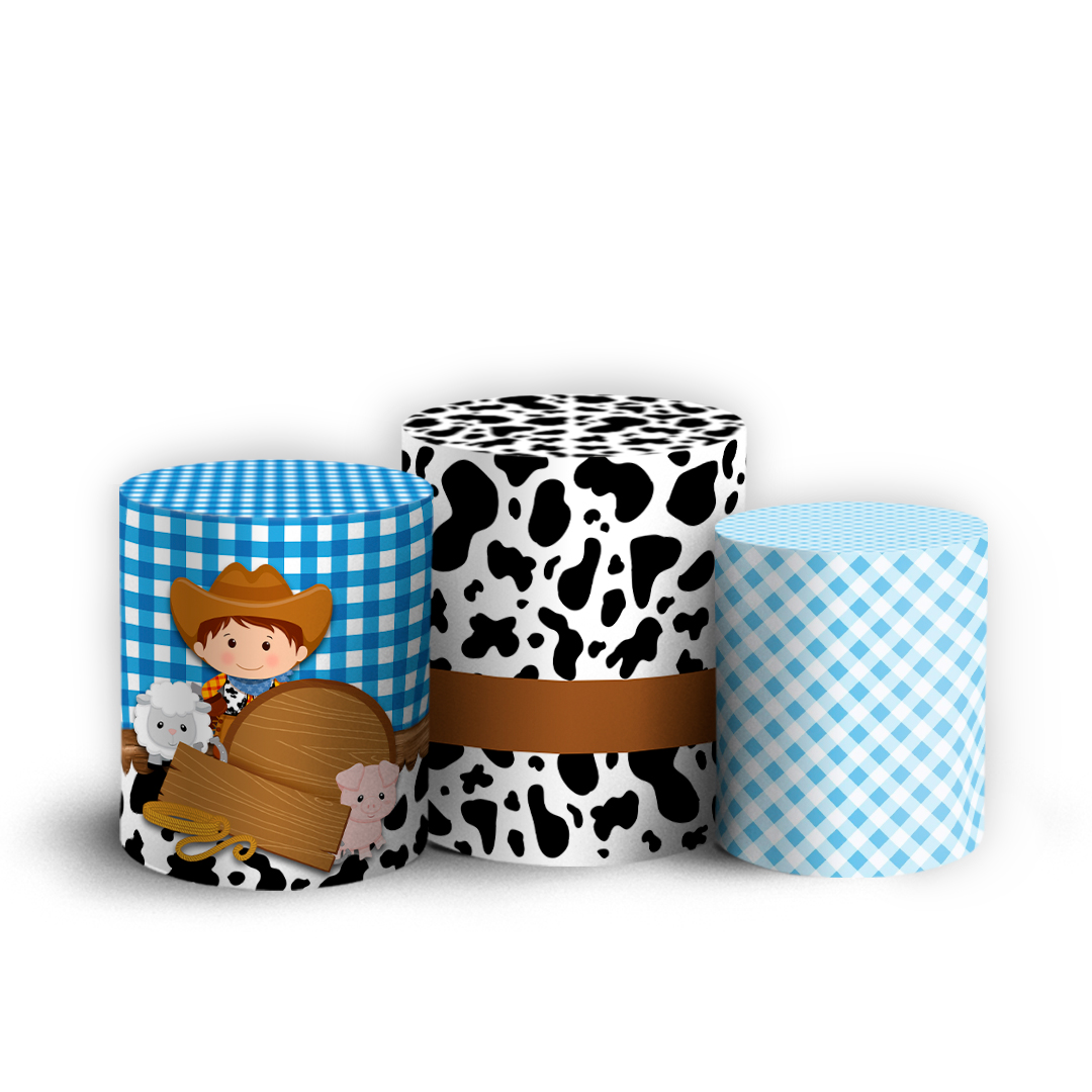 Trio Cilindro - Fazendinha Azul - Sublimado 3D + Elástico