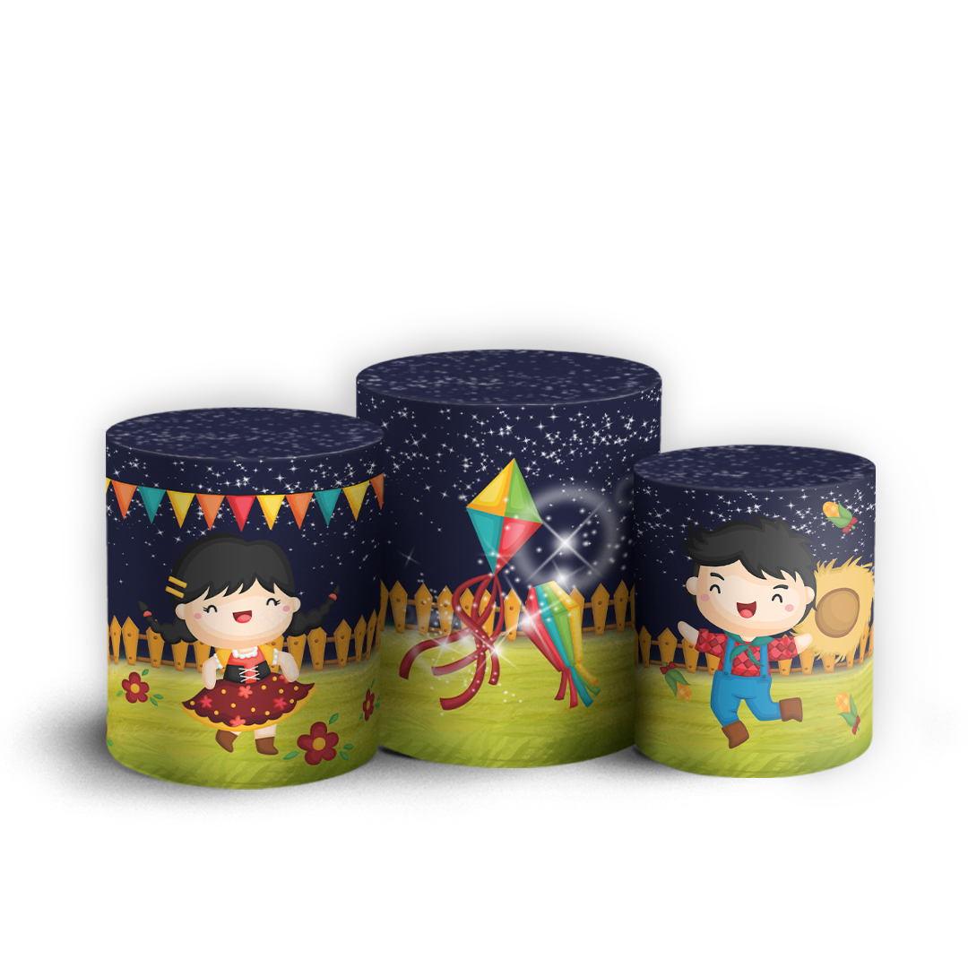 Trio Cilindro - Festa Junina - Sublimado 3D + Elástico