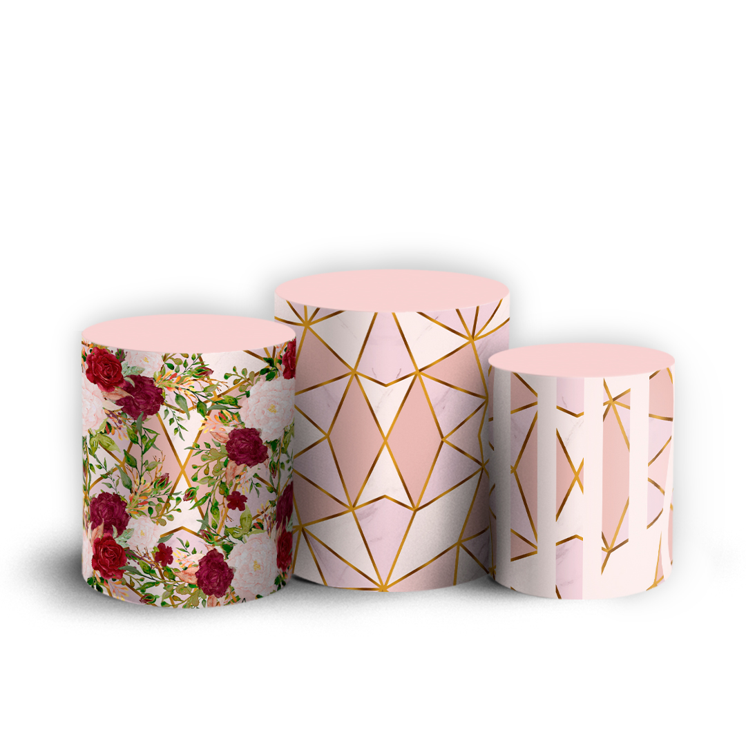 Trio Cilindro - Floral Abstrato Mármore - Sublimado 3D + Elástico