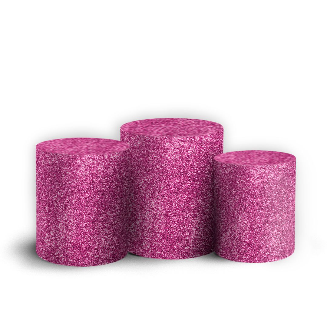 Trio Cilindro - Glitter Rosa - Sublimado 3D + Elástico