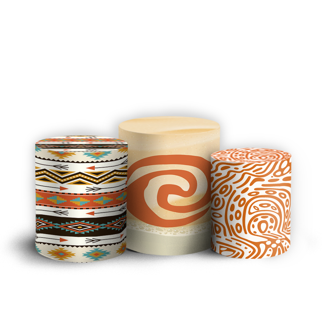 • Cilindro Pequeno (P): 45cm de altura x 38cm de diâmetro (119cm de circunferência)