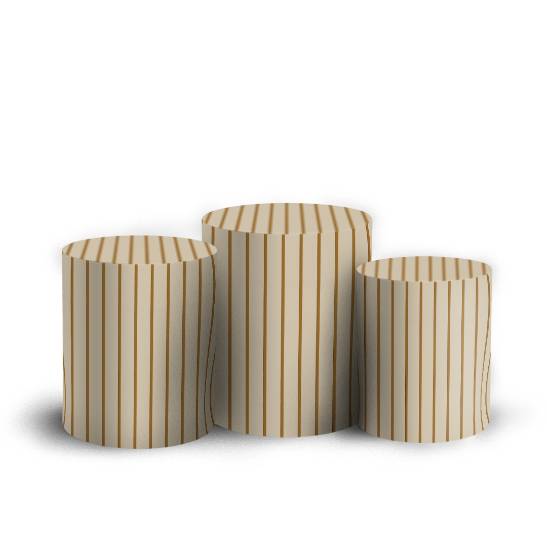 • Cilindro Pequeno (P): 45cm de altura x 38cm de diâmetro (119cm de circunferência)