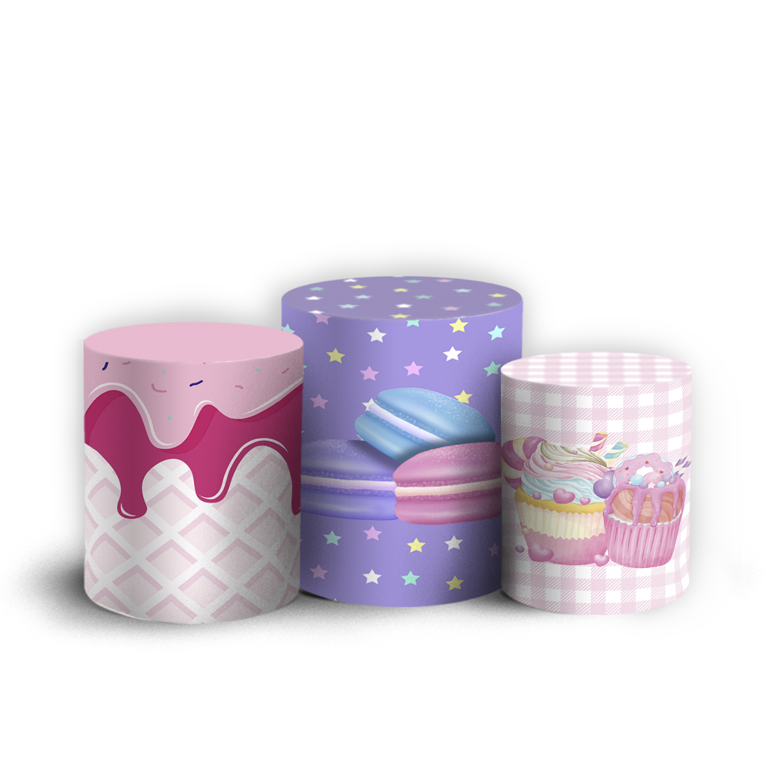 Trio Cilindro - Menina Confeitaria Doces - Sublimado 3D