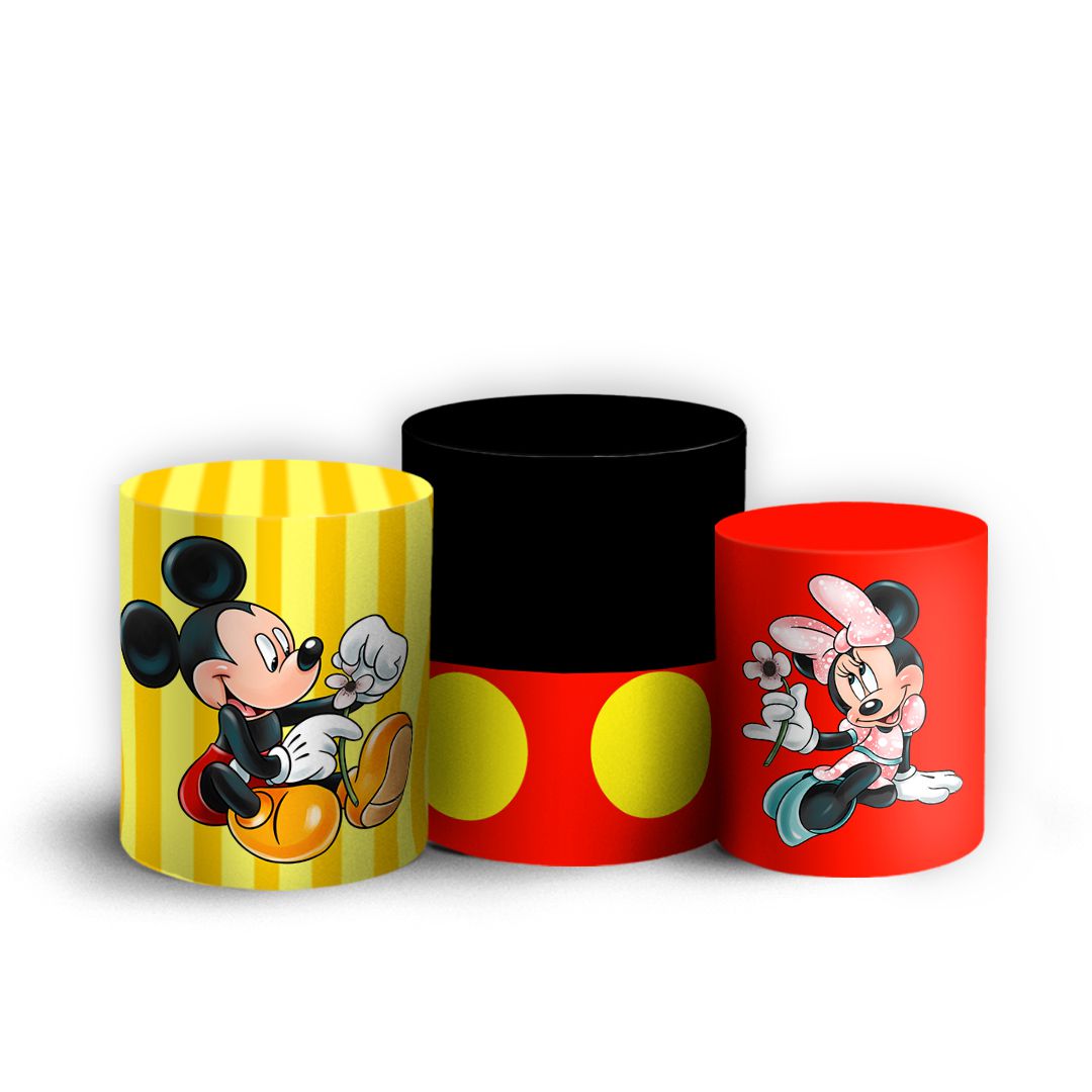 Trio Cilindro - Mickey e Minnie - Sublimado 3D + Elástico