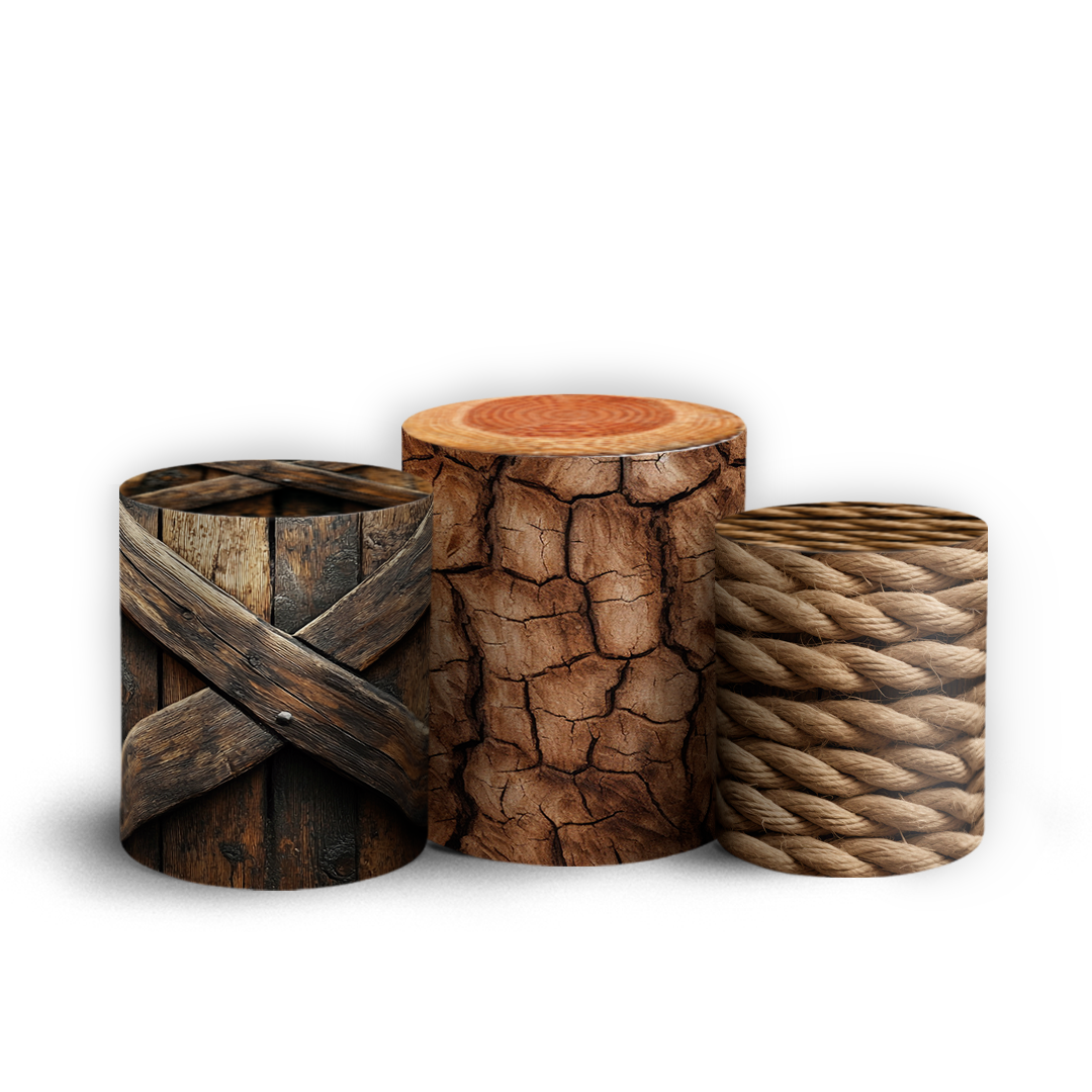 • Cilindro Pequeno (P): 45cm de altura x 38cm de diâmetro (119cm de circunferência)
