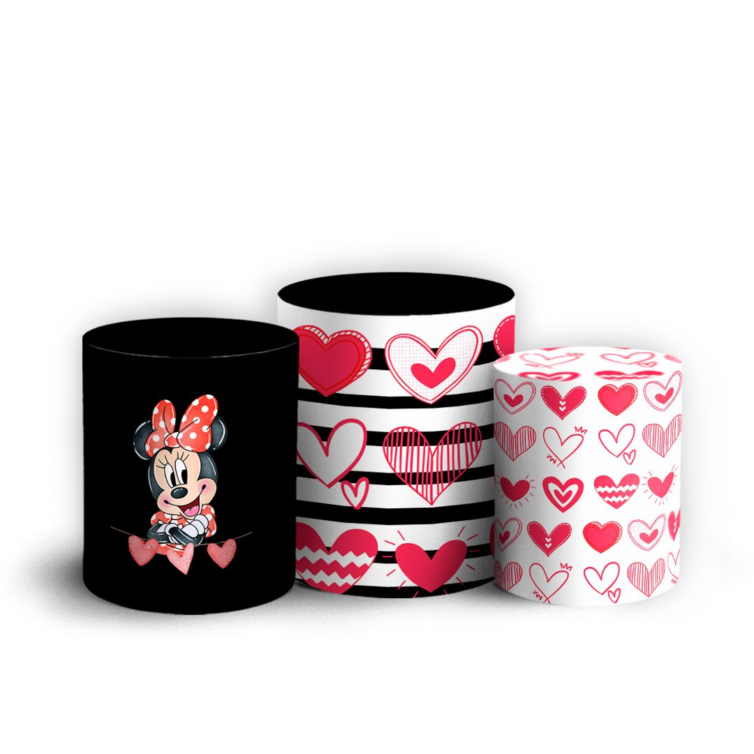 Trio Cilindro - Minnie Vermelha - Sublimado 3D + Elástico